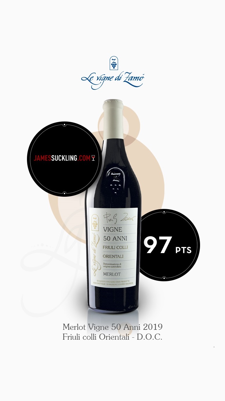 Il commento di James Suckling per Merlot Vigne Cinquant'Anni 2019 Friuli Colli Orientali: